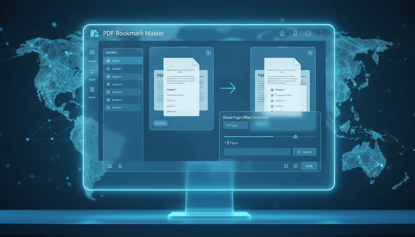 A straightforward method to correct PDF bookmark page offsets globally instead of manually editing each bookmark item.